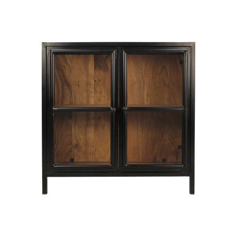 Praktische en stijlvolle kast Vitrinekast RichWood is een combinatie van gelakt mangohout met een zwart gelakt metalen frame, wat kenmerkend is voo...